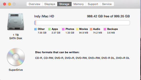 1 terrabyte hard drive, Super Drive, SD Card-reader.
