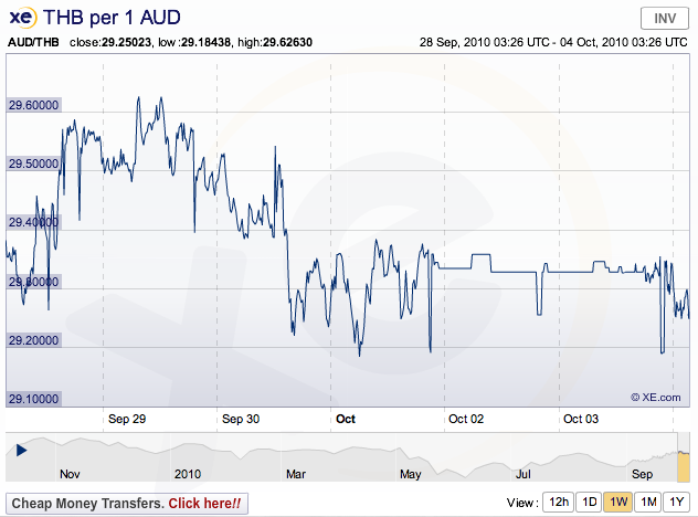 I also noticed the Aussie $ only fell to 29.1 to the baht on Oct 1, when in actual fact I got 29.8 in a direct transfer, compliments of the Aust Govt.