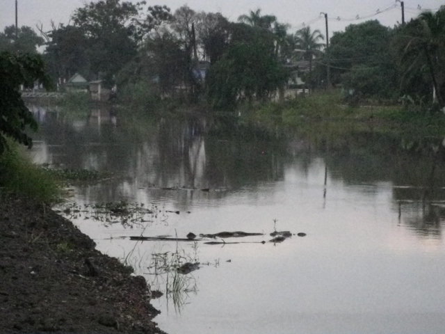 Khlong six up a foot or more over normal ? There was a barge with a suicide jocky operating the digger along there clearing dredging the crap he pulled out was placed as a wall along the bank ? Not the brightest thing to do with it as it has since disapeared almost completely then of coure they started resurfacing the road as well seemingly making it a tad wider towards the khlong so in went the rest of the spoils acompanied with road gravel ?