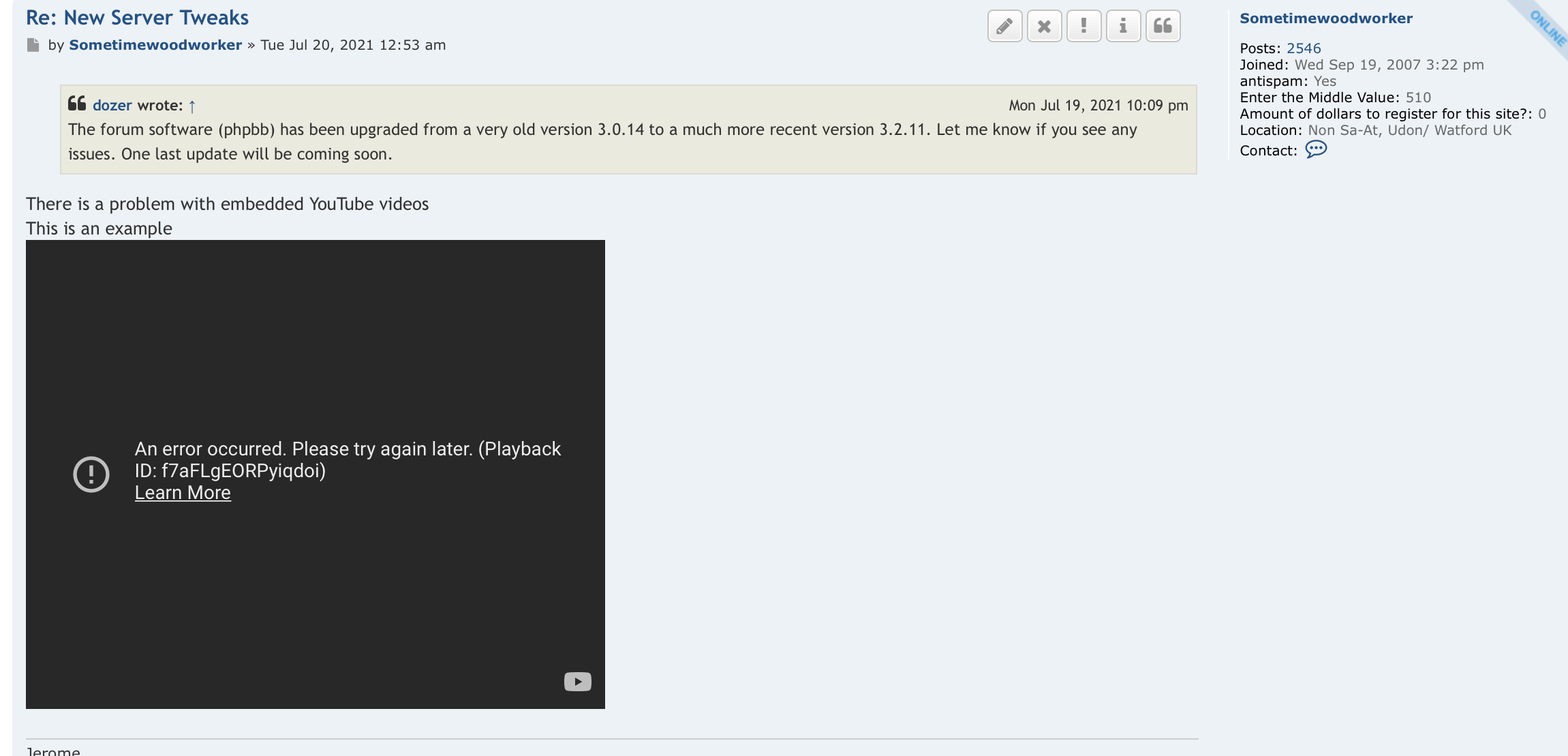 The forum software (phpbb) has been upgraded from a very old version 3.0.14 to a much more recent version 3.2.11. Let me know if you see any issues. One last update will be coming soon.